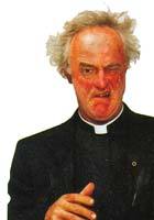 A man who stank of liquor, sat down on a subway next to a priest. The man's tie was stained, his face was plastered with red lipstick, and a half-empty bottle of gin was sticking out of his coat pocket.